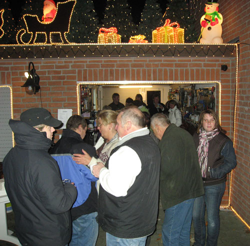 Hier einige Fotos von unserer diesjährigen Beleuchtungs-Einschalt-Party. Zirka 150 Gäste aus ganz Nordrhein Westfalen wollten sich das Ereignis auch dieses Jahr nicht entgehen lassen. Es war ein wirklich schöner Abend mit Glühwein, Eierpunsch, Bratwürstchen (280 Stück!) und vielen weihnachtlichen Süßigkeiten. Das kalte und trockene Wetter war ideal für heissen Glühwein und Eierpunsch! Ein großes Dankeschön an Karsten für's Grillen und Raik, Stefan & Tobi für ihren Einsatz am Bierwagen! Ein weiteres großes Dankeschön an die Fleischerei Klusmeier und Möller's Super Snack für die Grillwürstchen!
