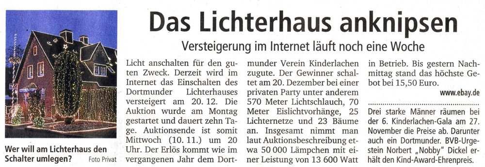 Zeitungseintrag vom 04.11.2010 in der Tageszeitung "Ruhr Nachrichten"